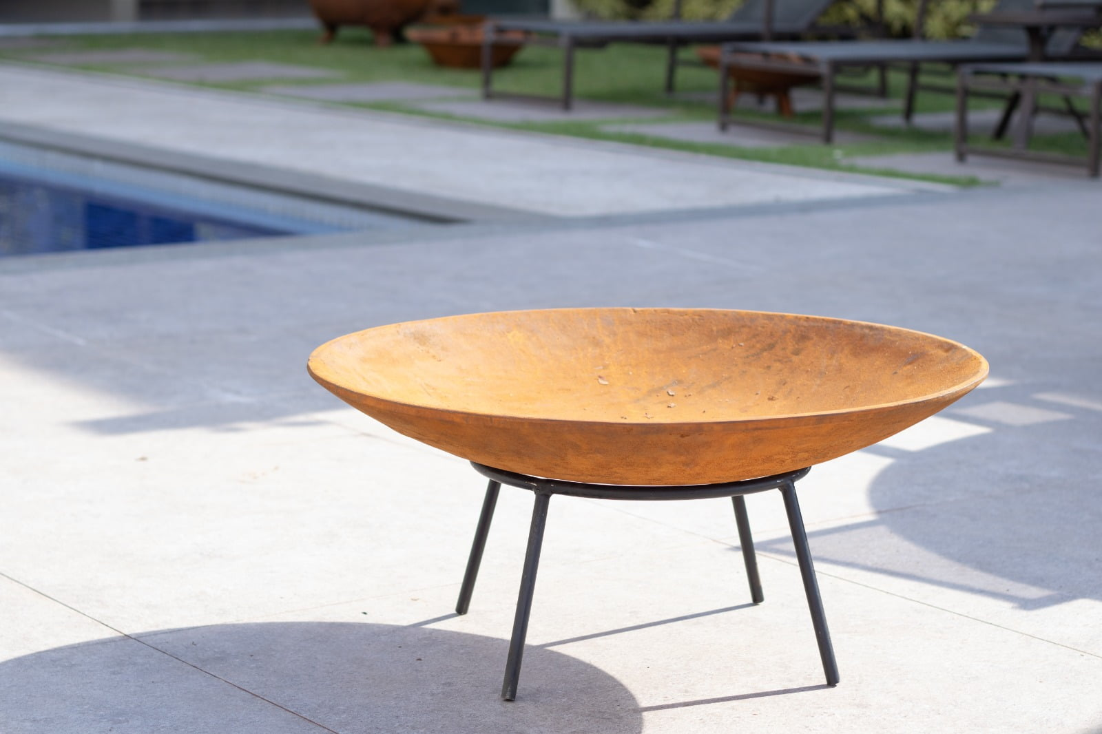 Fabricadas em ferro fundido e acabamento Cortein envelhecido darão o toque final na sua área externa de laser, varanda ou quiosque.